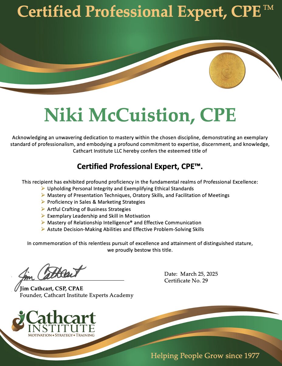 The addition of Beth Robins, Niki McCuistion, and Terry Paulson to the cadre of Certified Professional Experts is a testament to their exceptional skills, dedication, and contributions to their respective fields. Each has demonstrated remarkable expertise and has met the stringent criteria set by the Cathcart Institute for this esteemed certification.
