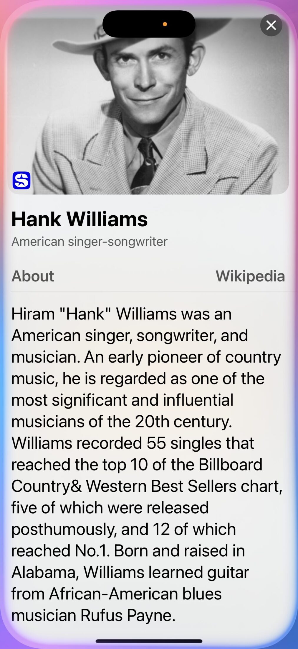 Hank Williams was even more influential. He is often referred to as "Pappy" (grand father) by today's Country Music stars. Hank was a gifted songwriter whose music is still sung today. He died at age 29.